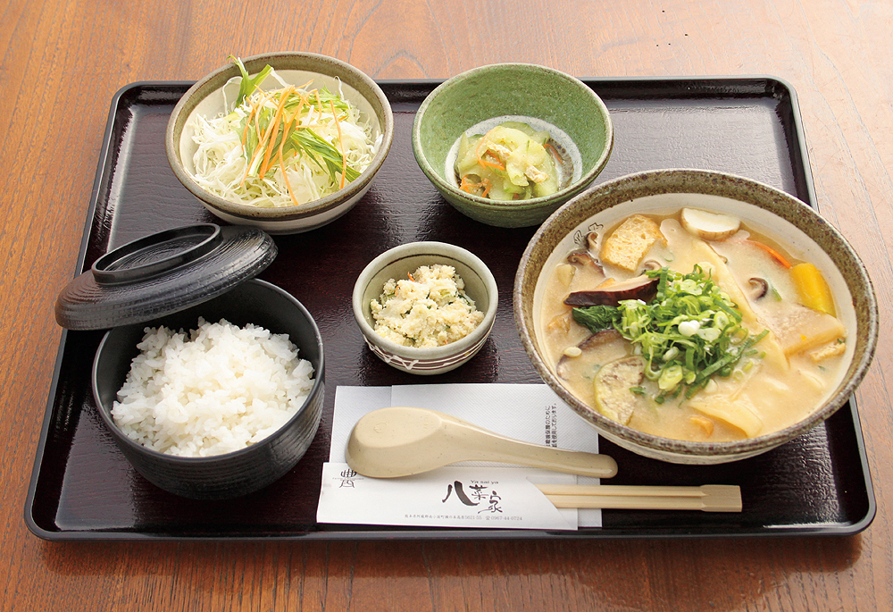 Please have dishes with rice and vegetables cultivated by homemade at the terrace where commands a plateau. You can eat homemade pickles as much as you like.