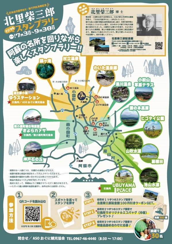 破傷風の治療法を開発した細菌学者です。新千円札肖像記念として7月3日より「北里柴三郎デシタルスタンプラリー」を開催致します。