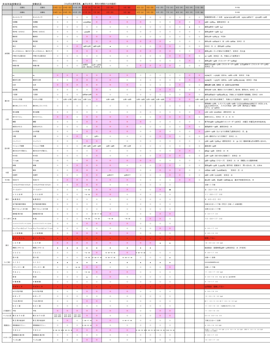 ※12/31 13時まで 1/1、2 休業 1/3  10時〜15時まで