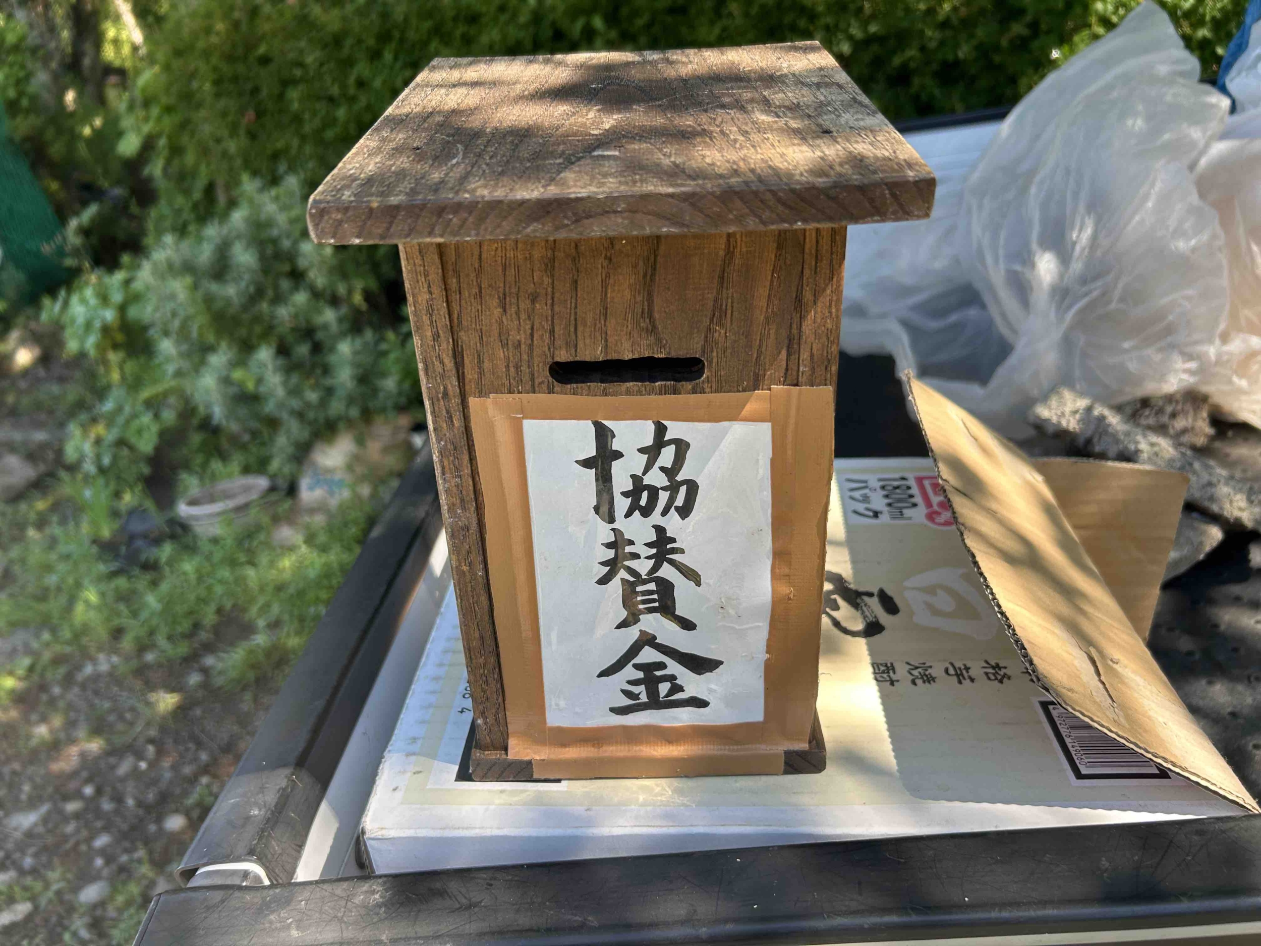 とっても自然を感じられる野草園には協賛金箱がございます。