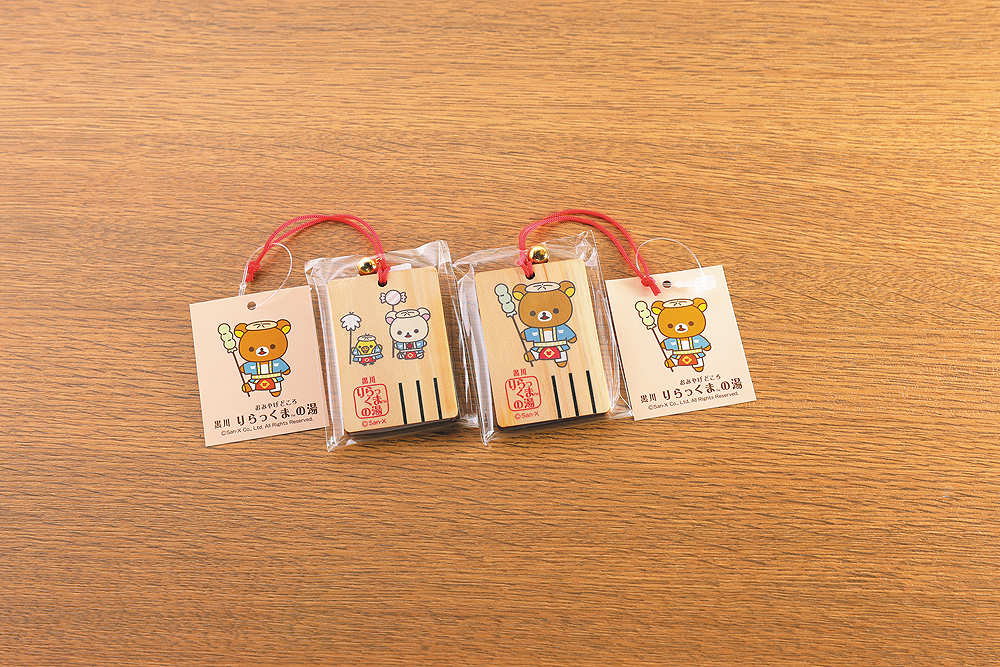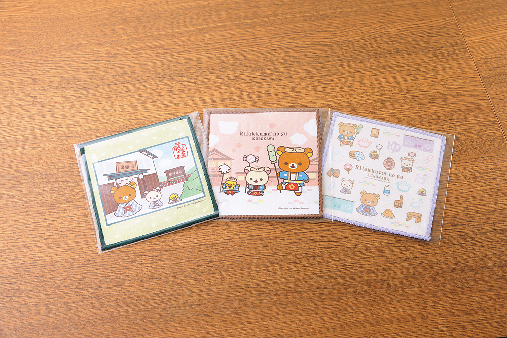 黒川温泉ならではの「大名行列」「奴さん」をモチーフにしたリラックマの黒川限定商品や土産物、キーホルダーや和小物、袋物など、広く展開しております。