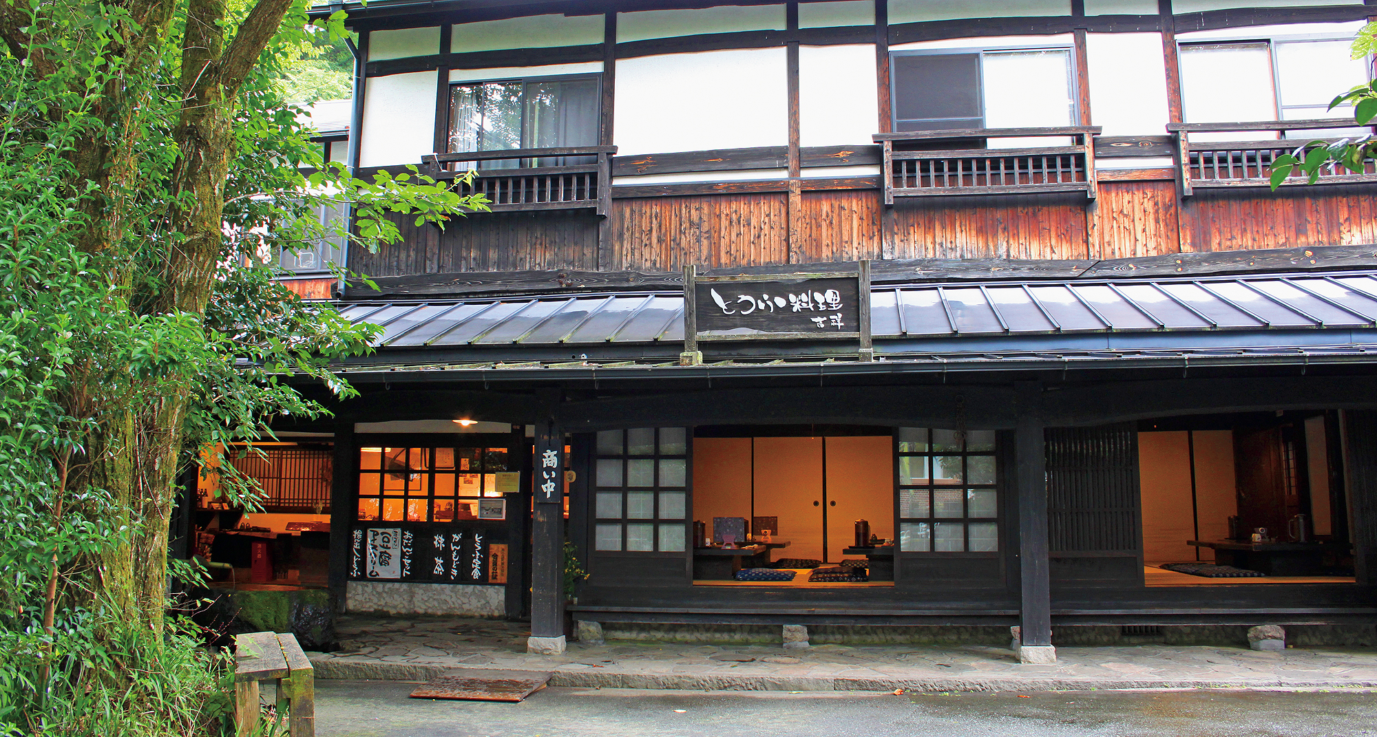 用筑后川的源流水和天然卤水制作的稍硬的豆腐和魔芋。