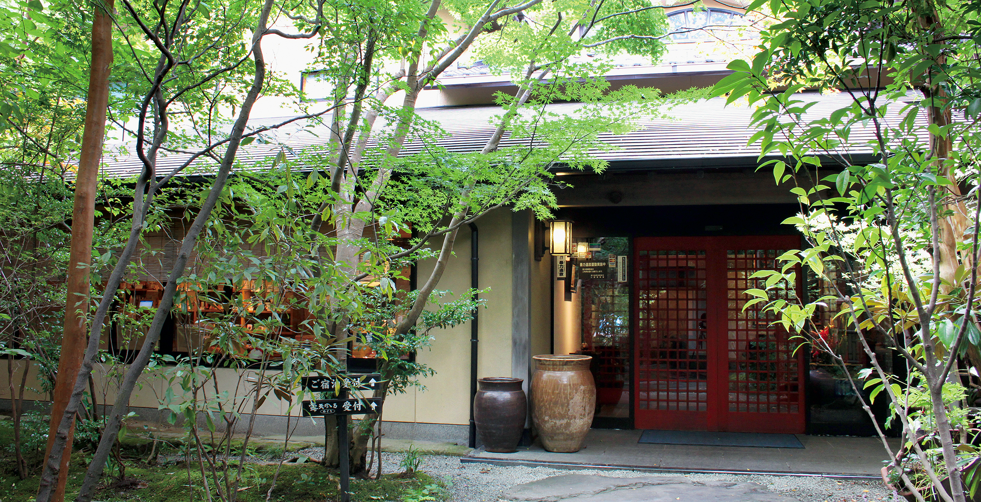 是一傢稍離溫泉街的愜靜的旅館,坐落在綠色蔥蔥的溪流邊。請在高雅的氛圍裡一邊享受溫暖熱情的服務,度過一段美好的時光。